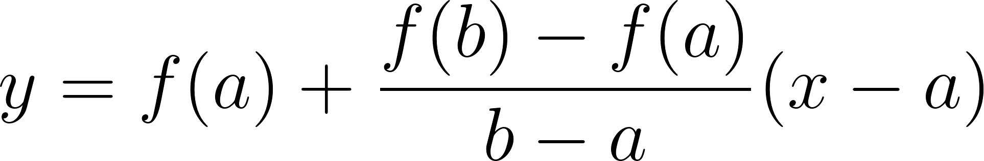 Primero se consideran dos puntos y pertenecientes al gráfico de la función. La ecuación de la recta que pasa por estos dos puntos es: