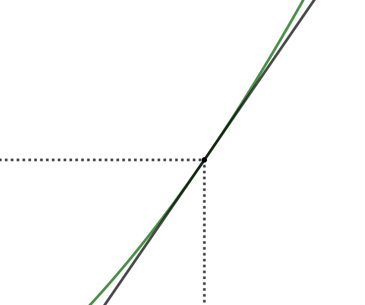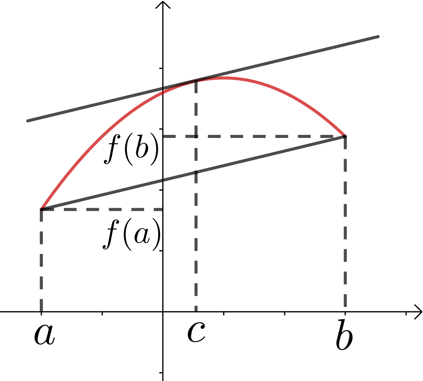 - Existe al menos algún punto en el intervalo tal que la tangente a la curva en es paralela a la recta secante que une los puntos y .