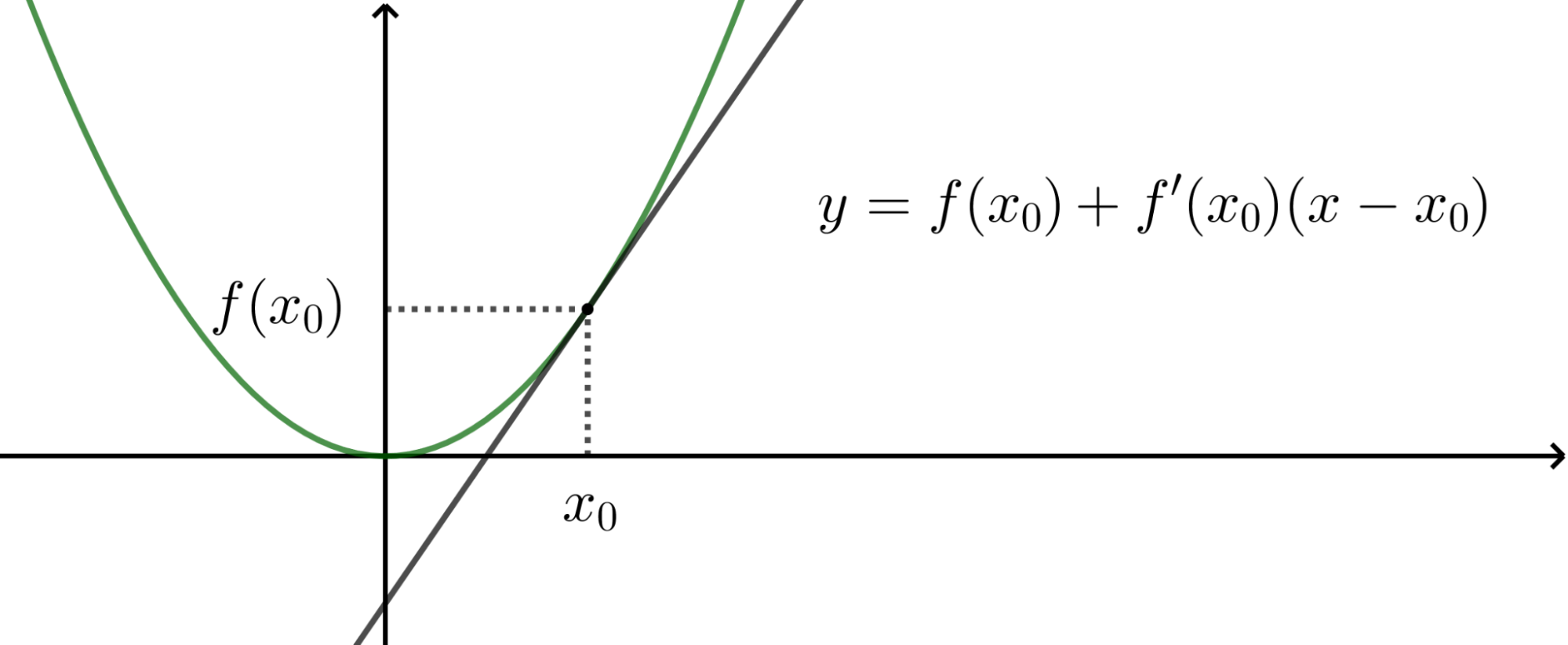 y tomando factor común y ordenando, obtenemos, finalmente, la ecuación de la recta tangente al gráfico de en el punto : | ||