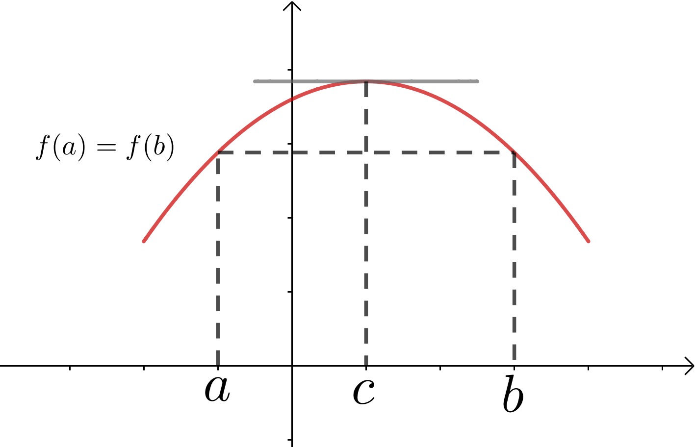 Michel Rolle [1652-1719, Francés]: Sea una función continua en el intervalo cerrado , derivable en el intervalo abierto y . Entonces: