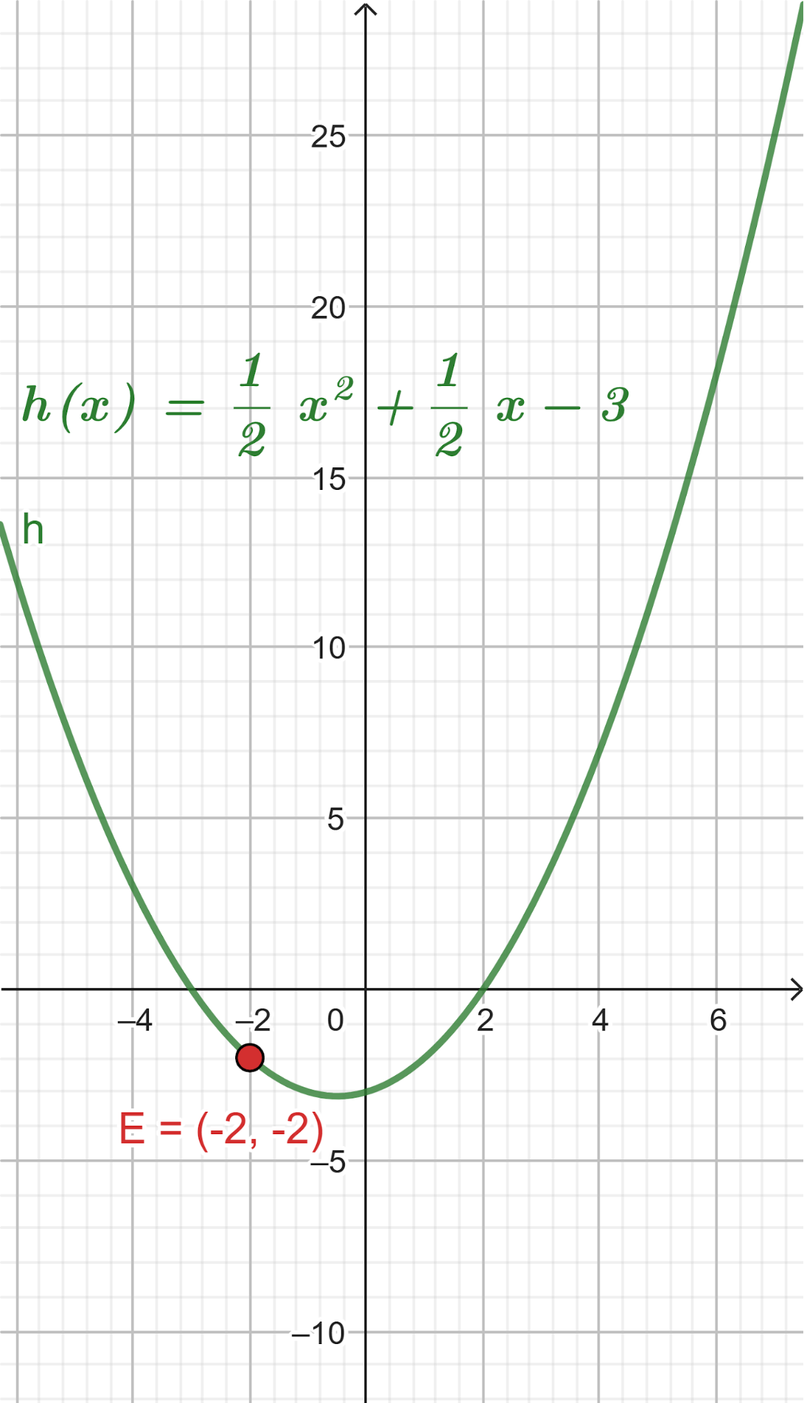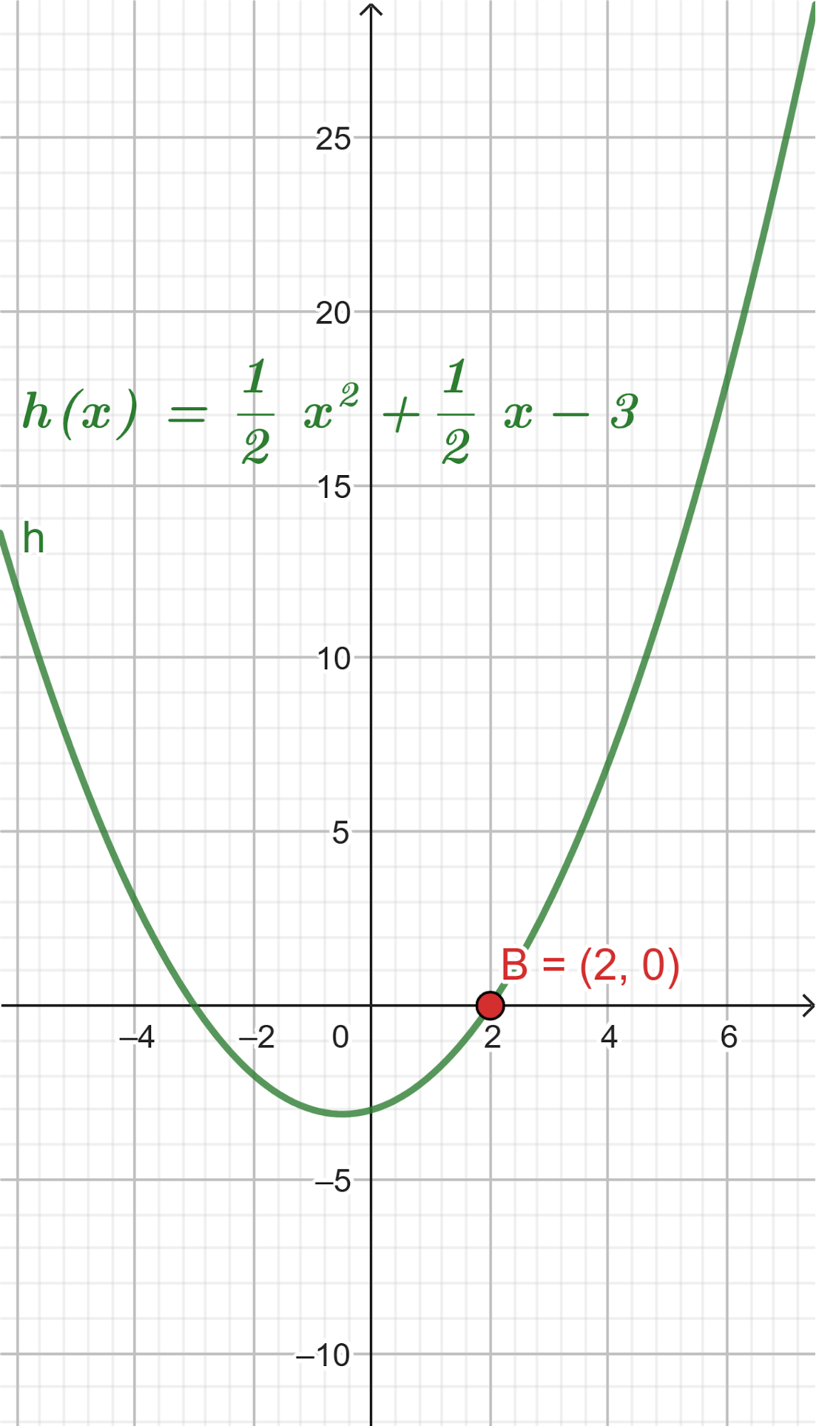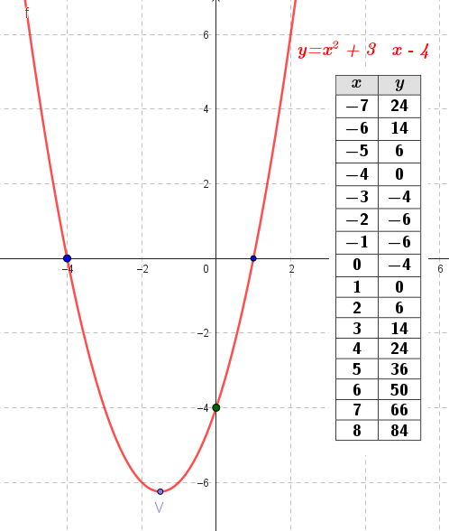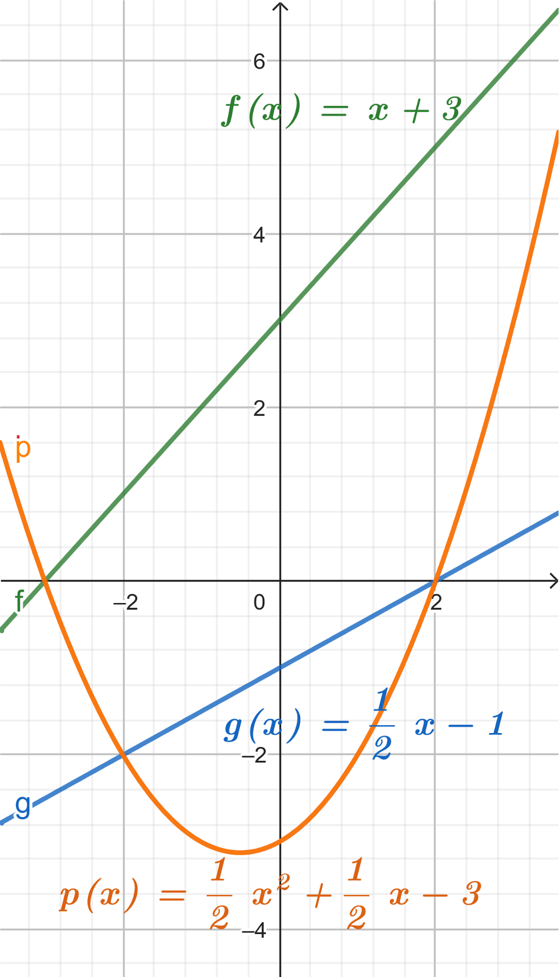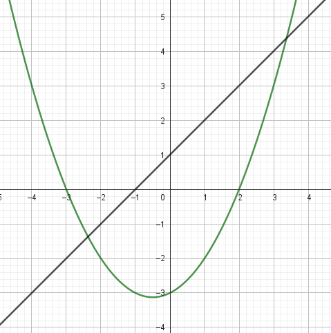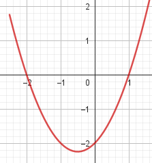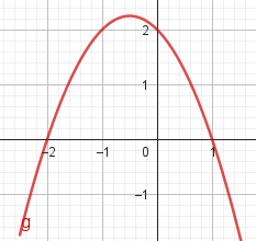 Este gráfico se corresponde con g(x) ya que es de grado 2, sus raíces son -2 y 1 y la concavidad es negativa: | Este gráfico se corresponde con f(x) ya que es de grado 2, sus raíces son -2 y 1 y la concavidad es positiva: |
