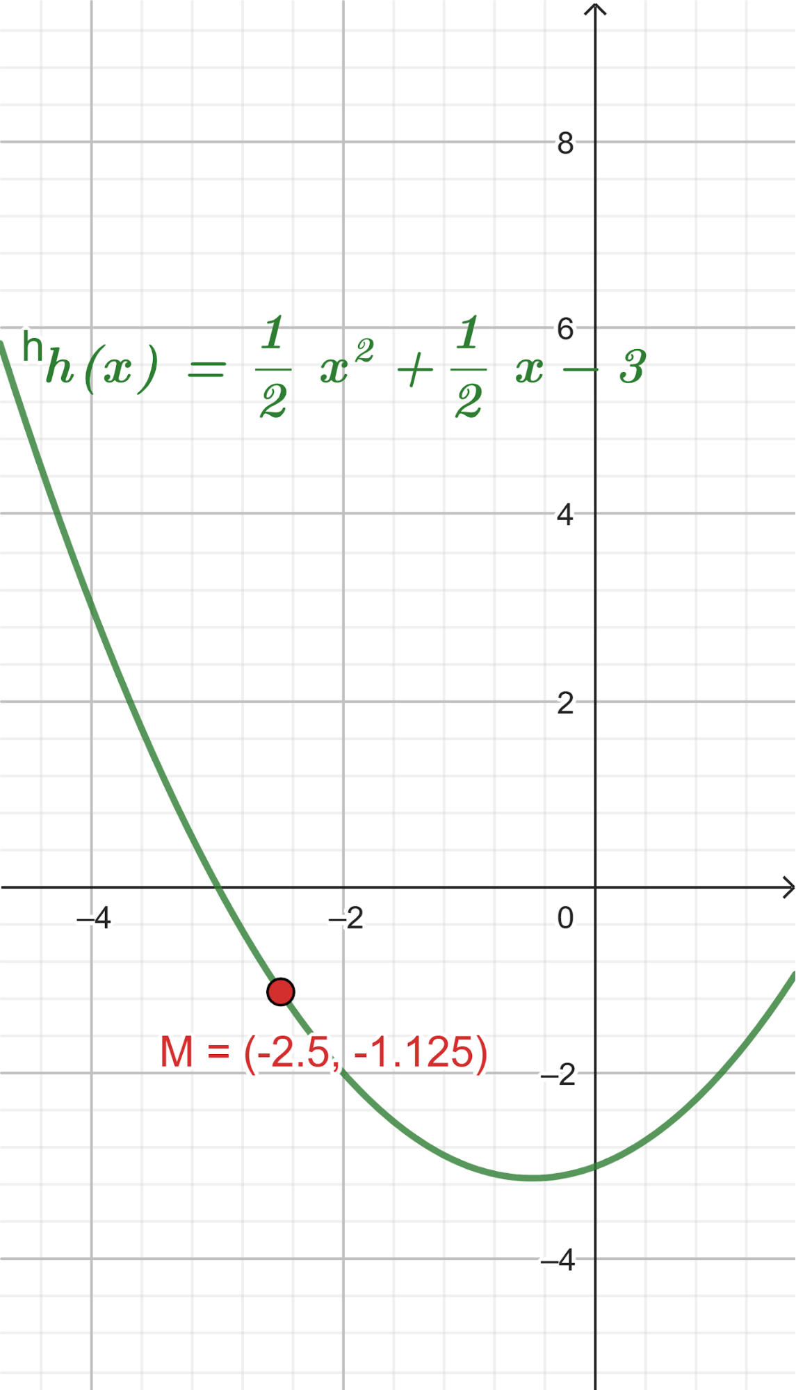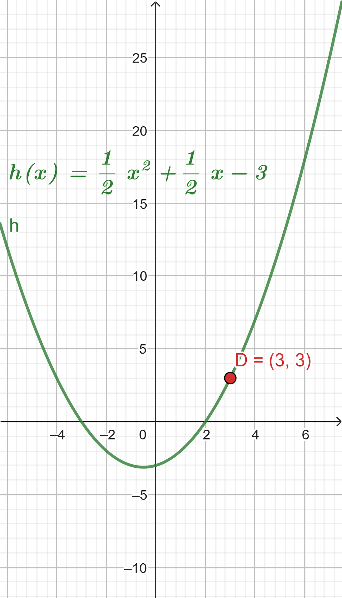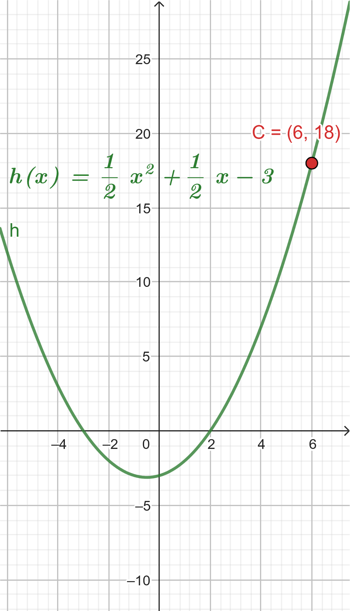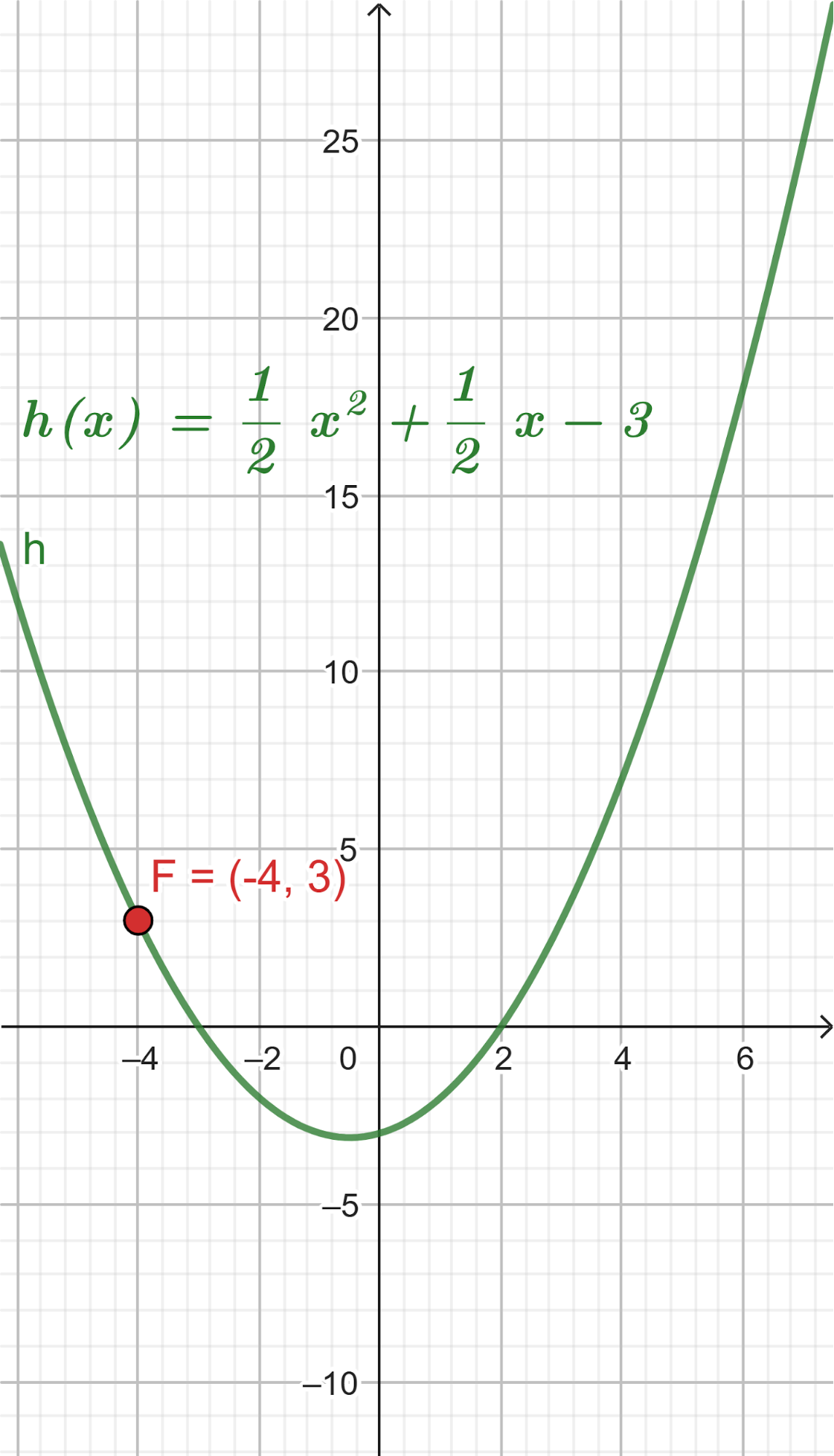 Este gráfico se corresponde con g(x) ya que es de grado 2, sus raíces son -2 y 1 y la concavidad es negativa: | Este gráfico se corresponde con f(x) ya que es de grado 2, sus raíces son -2 y 1 y la concavidad es positiva: |