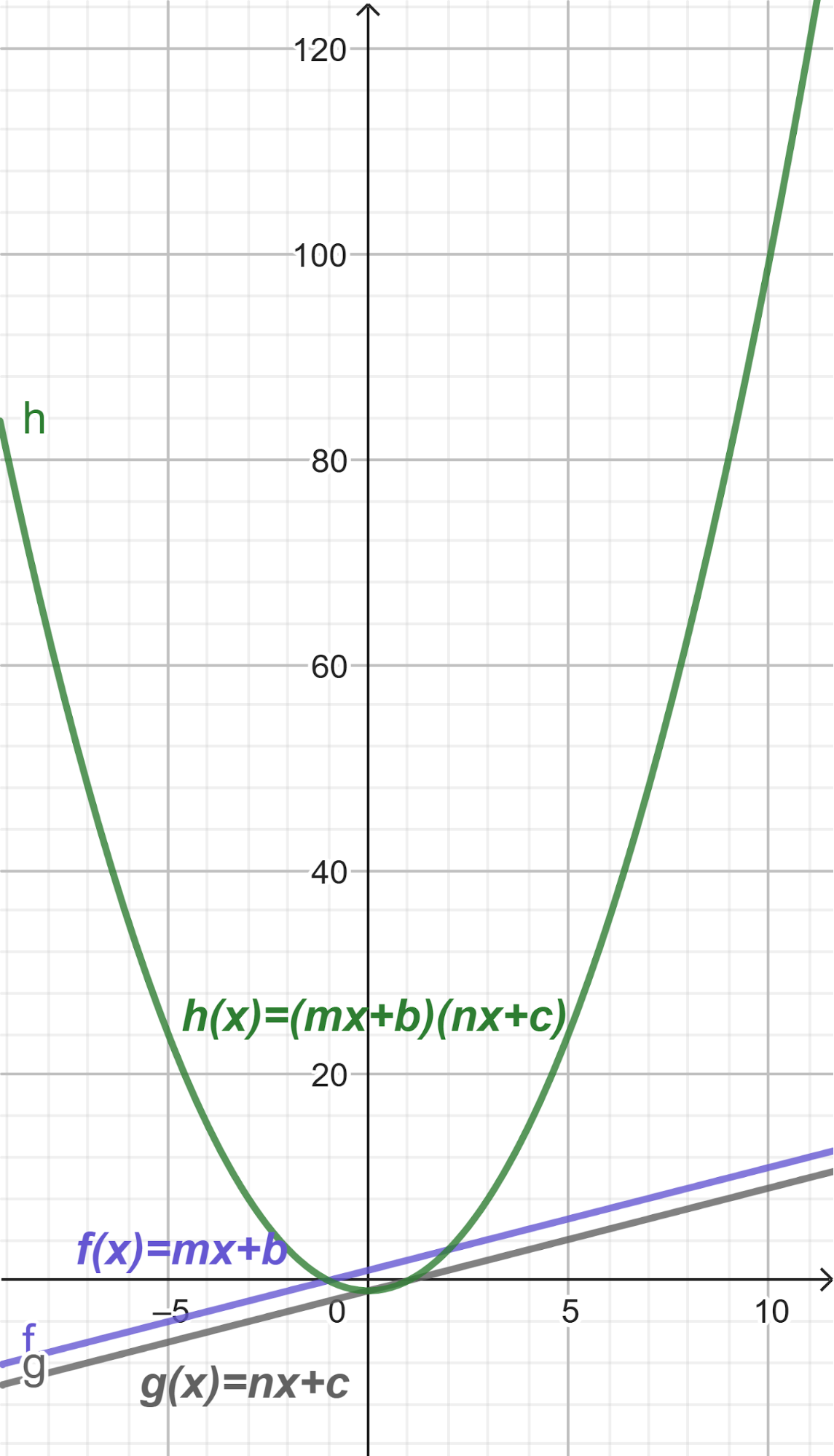 - ¿Es cierto que siempre que multiplicamos dos funciones cuyos gráficos son rectas obtenemos una función cuyo gráfico es una parábola?.