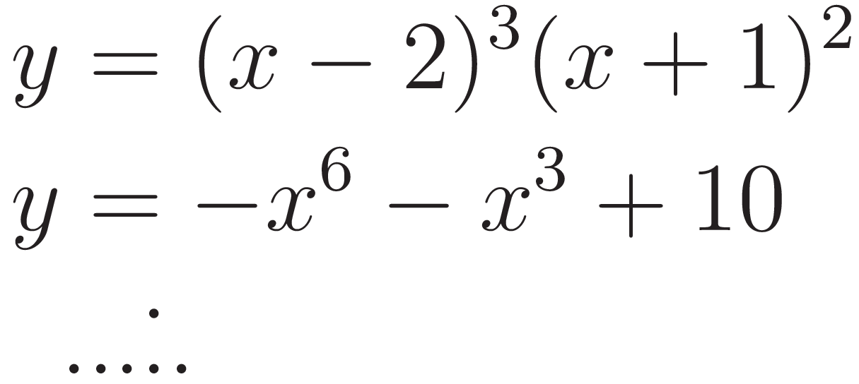 Todas estas funciones se llaman Funciones Polinómicas. Este problema nos servirá para investigar propiedades de los gráficos de distintas funciones polinómicas, en relación a sus fórmulas y también distintas formas equivalentes de escribir sus fórmulas. |