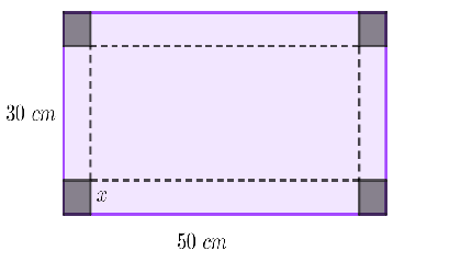 Problema 1. A partir de láminas metálicas cuadradas de de lado, se van a construir cajas sin tapa de base cuadrada. Para ello se recortan pequeños cuadrados iguales en cada una de las esquinas, lo que permitirá, posteriormente, el plegado de la lámina metálica para armar la caja. Como el material irá soldado, no se necesita dejar pestañas para el armado.