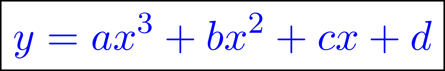 Funciones polinómicas de 3° grado Función cúbica | Su gráfica es una curva Tienen ramas parabólicas | A veces, y con 3 raíces reales, la curva toma las siguientes formas: Si a > 0 la curva tiene forma parecida a una N mayúsculas. Si a < 0 tiene forma parecida a una N mayúsculas invertida. Cuanto mayor es |a| más estilizada es la curva y viceversa. Los puntos de corte con el eje X: Se obtienen resolviendo la ecuación de 3° grado asociada. El punto de corte con el eje Y: Se obtiene calculando , siendo Q(0, d). | ||