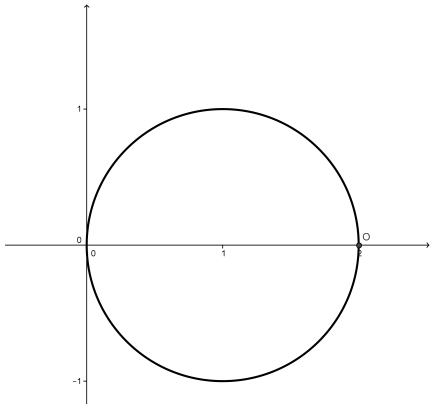 Estudien las funciones e correspondientes a cada una de estas circunferencias, siempre comenzando el recorrido en el punto y girando en sentido contrario al de las agujas del reloj.